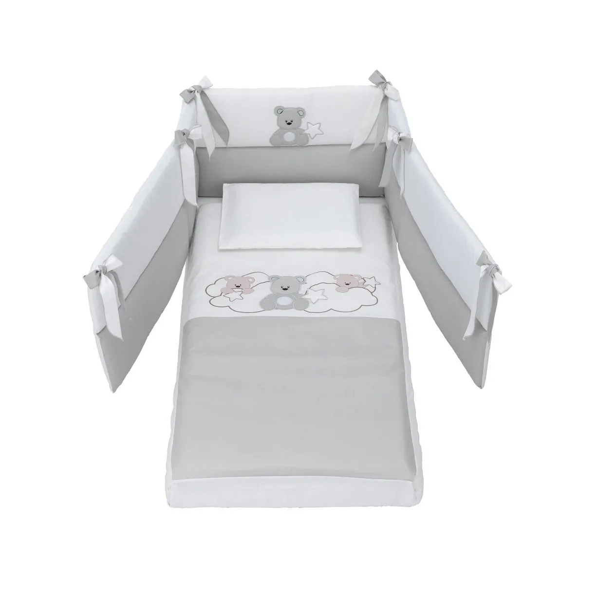Azzurra Design 3 կտորանոց մանկական մահճակալի պաշտպանության հավաքածուն՝ բամբակյա, հատուկ նախագծված է համատեղ քնելու փորձը բարելավելու համար ապահովելով ձեր երեխայի համար անվտանգ և հարմարավետ քնի միջավայր