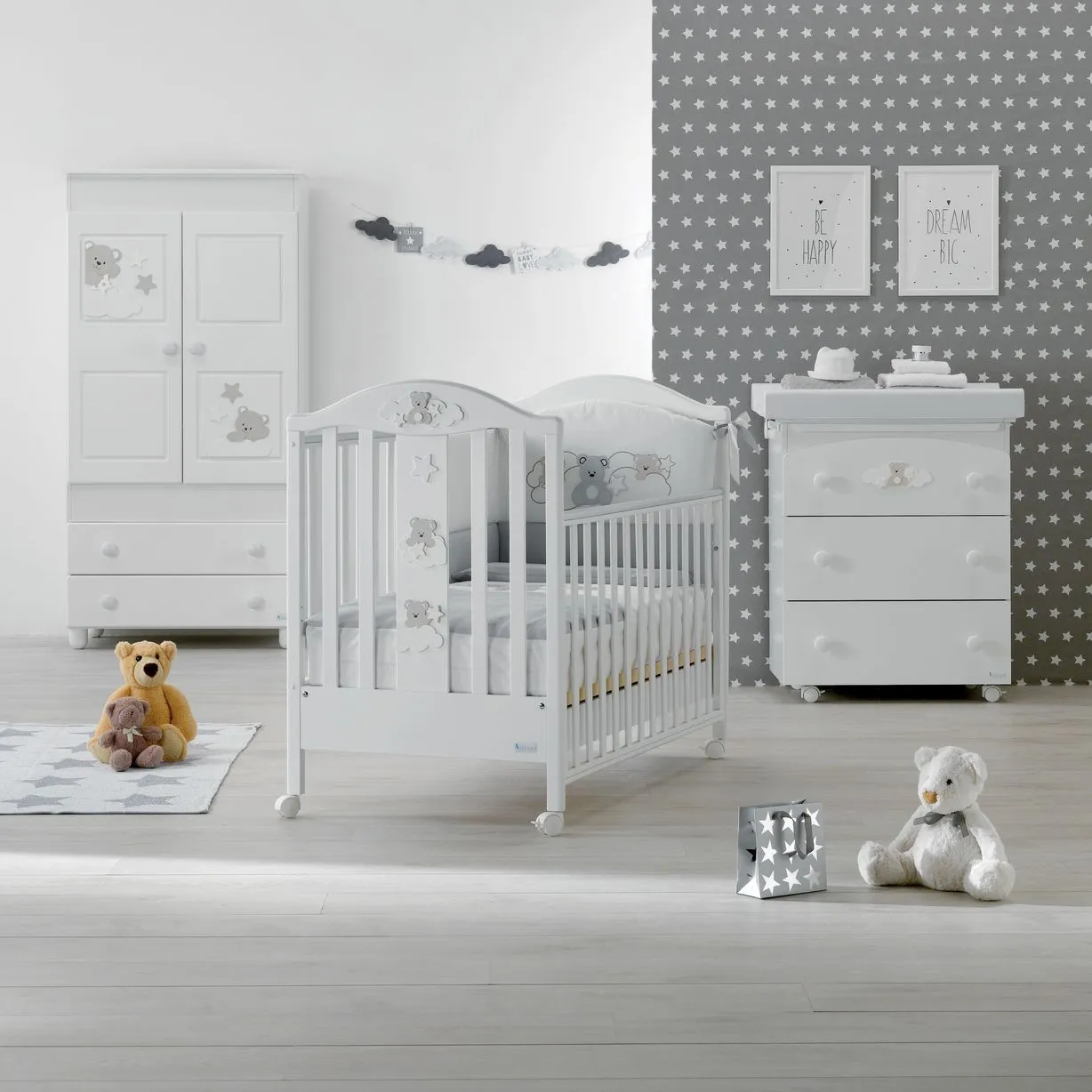 CRIB FUNKY WHITE (with white bear decoration)
