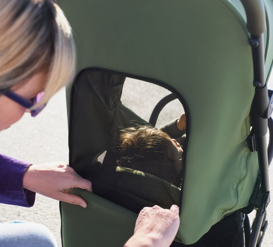 Անջրաթափանց կտորային հատվածներ և բարելավված օդափոխության համակարգ․ օդափոխվող հատվածներ նախատեսված են ինչպես հովանոցի, այնպես էլ մեջքի հատվածում՝ ապահովելով օդի ճիշտ շրջանառություն և երեխայի հարմարավետություն տաք եղանակին։